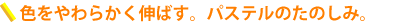 パステルドリーミングアートは、「ちょっといい感じでかわいい絵」が だれでもかんたん&たのしく描けちゃう不思議なアート技法です。 だれでも1回の講座(ワークショップ)で、 かわいい絵が描きあげられ、 おうちでも簡単に楽しめるようになります。 パステルという画材と秘密の技法を使って描きあげる絵は、 色合いがとても美しく、描いているうちに心もおだやかになっていきます。 描いた絵は、おうちで飾るのも楽しいですし、贈っても喜ばれますよ。 そんなたのしくて、ちょっと不思議なお絵描きを楽しんでみませんか? パステルドリーミングアートに使用するのは「パステル」という画材です。 色鉛筆や絵の具などの有名な画材に比べると、 あまりなじみがないものかもしれません。 でも、この「パステル」という画材は、とってもすぐれものなんです。 絵の得意苦手は関係なく、 みんながキレイに楽しく描けちゃうという不思議な画材なんです。 ワークショップでは、 その画材と「秘密の技法」を使って みなさんが今まで描いたことのないような絵を描いていきます。 この「秘密の技法」を使うと、描いていくうちに どんどんと楽しくなって、心もおだやかになってきます。 描き終えた方からは、 「自分が描いた絵じゃないみたい」という声が多く聞かれます。 かわいいだけでなく、 明るさややさしさ、あたたかさがあらわれた自分の絵を見て、 知らなかった自分に出会えたという方もたくさんいます。 パステルドリーミングアートは、かんたん&たのしいだけでなく、 いろいろな発見やたのしみのある魅力いっぱいのアートです。 パステルドリーミングアートの「秘密の技法」を使って描くと、 初心者の方や、絵が苦手という方でも、 飾れるぐらいにかわいくてステキな絵が描けちゃいます。 「秘密の技法」は、誰でも簡単に使えて、 「なんだか芸術家が描いたみたい」と自分で言ってしまうぐらい 絶妙な色合いや雰囲気を出せたりします。 絵が仕上がると、 自分で描いたその絵の雰囲気にうっとりするだけでなく 1枚のアートとしての仕上がりにもきっと驚くことと思います。 描いた絵をおうちで飾ってみるのもステキですし、 贈り物としても喜ばれるアートが描けるようになっちゃいます。 パステルドリーミングアートの習い方はかんたんです。 岐阜県・愛知県を中心に行っているワークショップか ご要望に応じてあなたのお宅へ出張する「お出かけワークショップ」の どちらかで習得することができます。 初心者の方はもちろん、何回も受講しているベテランさんまで すべての方が楽しめるプログラムをご用意しています。 モットーはやさしさいっぱい&懇切丁寧。 みなさんがたのしくかわいい絵を気持ちよく描けるよう あたたかい気持ちと笑顔でお会いできたらと思っています。 ワークショップでは、パステルと「秘密の技法」を使って たのしくかわいい絵を描いていきます。 パステルドリーミングアートの道具や材料は 手軽にそろえられるものばかりですから、 ワークショップで習った後は、おうちでも自由に描けるようになります。 たのしくあたたかな笑顔でみなさんに会えることを楽しみにしています。