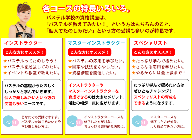 パステル学校が蓄積してきたノウハウをあますところなくお教えいたしますので、