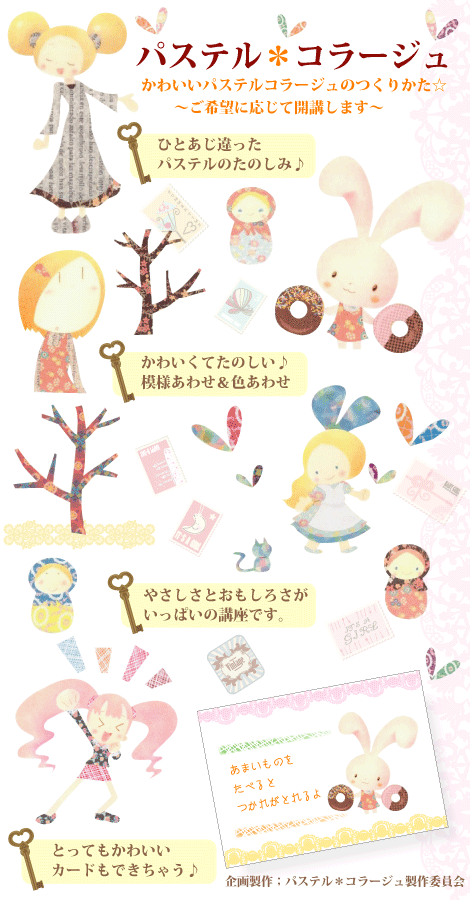 この講座は、「パステル*コラージュ」でかわいい絵を描いて