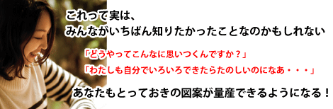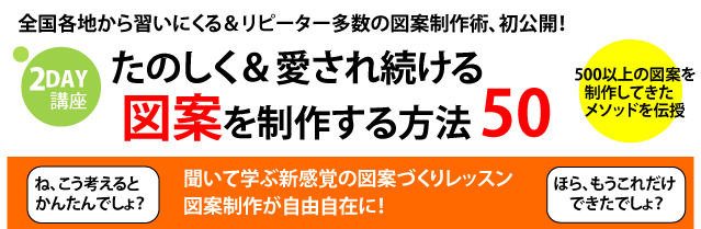 イメージしたとおりに図案が制作できるようになる! この講座のメソッドを学ぶと、イメージしたとおりに図案が制作できるようになります。 いろいろチャレンジしてはみるものの、 「思ったとおりに仕上がらない」という方には、 何よりもほしいメソッドかと思います。 実は、イメージしたとおりにできるようになるのは第1段階。 このメソッドを実践すると、 次第に、イメージした以上の作品をつくることができるようになります。 アイデアの出し方から学べるので どんどんと作品ができるようになる! わたしたちは、実際の教室で500以上の図案を使ってきました。 もちろんすべて違う図案です。 アイデアを出すところから、作品という形に仕上げていくまでには いくつものコツとテクニックがあります。 この講座では、それらをどなたでもわかりやすいよう体系化し、 身につけていただきます。 これを実践できるようになると、 アイデアがどんどんと生まれ、新しい作品が次々と描けるようになります。 1つのアイデアから まったく違う10の図案をつくるテクニック! この講座では、ここぞというときに使える裏技も伝授します。 なんと1つのアイデアから、まったく違う10の図案をつくるテクニックです。 限られた時間で作品数を増やしたい方、 コンスタントに作品を作り続ける自信がない方にとっては 非常に心強いメソッドです。 また、「いつも同じような作品になってしまう」という方にとっても 大きく生まれ変わるための強力な武器になるテクニックです。 アイデアの出し方&図案の発想法のバリエーションは どれだけ持っておいても損はありません。 リピーターさん続出&愛されつづける図案の秘密。 ある段階でこのスパイスを入れる! 「同じように描いても何かが違う」 多くの方がこうした思いをしたことがあるかと思います。 その【何か】を知り、それを意図的に使えるようになることで あなたの作品が大きく変わります。 その【何か】はどのように考えることで生まれ、 どの段階でどのように入れるものか。 絵を描く上での大きな「謎」と思われている部分を どなたでも身につけられるような形に体系化することに初めて成功しました。 新感覚のレッスンです。実践しながら学んでいきます。 これまで教室で使った図案は500以上。 コンスタントに作り続けられる秘訣を初公開! 限られた時間の中でコンスタントに図案をつくっていくこと、 はじめての方はもちろんのこと、 何年も通ってくださる生徒さんにも変わらずたのしんでいただける図案を つくりつづけていくこと。 そこには、つくるための考え方があり、流れがあり、 ある段階で必ずやるべきことがあります。 やさしくあたたかな作品を作り続けていくために。 それを支えてきた秘密の数々を公開します。 多くの方から、「図案作りは難しい」「じぶんで作るのは大変」という声をききます。 その1つの答えがこの講座です。 これまでにわたしたちは500以上の図案を実際の教室で使ってきました。 もちろんこの数字には、ラフや習作は含みません。 当然、同じものはなく、すべて違う絵柄でこの数です。 「どうやってこんなに思いつくんですか?」 「わたしも自分でいろいろできたらたのしいのになあ・・・」 教室をやっているとこうした言葉をよくいただきます。 なるほど、みんなが知りたいのは、こうした部分なのかもしれないなあ。 そう考えて、形にしたのがこの講座です。 ぶっちゃけた話、受講料は高めです。 でもそれは、わたしたちにとって それだけ大切なものを詰め込んでいるということでもあります。 図案を描く講座ではなく、講義と練習が中心の講座です。 本気でがんばってみたい方、待ってます。 講座概要は下記の通りです。 お申込は、 必ず 知っておいてほしいことをお読みいただいた上でお願いいたします。